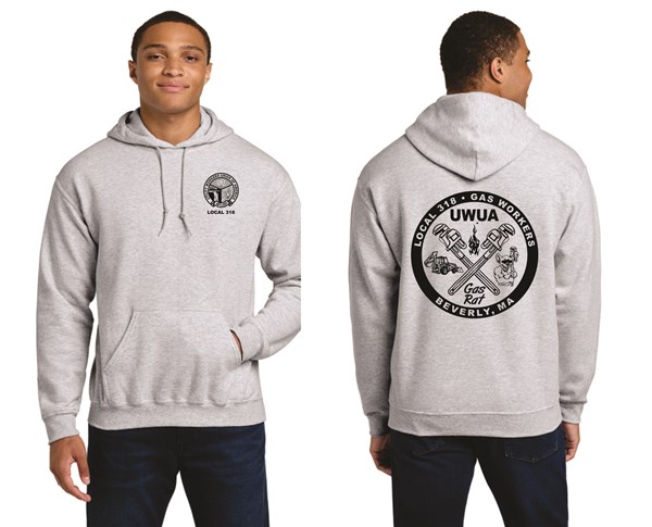 8-ounce, 50/50 cotton/poly Double-needle stitching at waistband and cuffs Double-lined hood with dyed-to-match drawcord 1x1 rib knit cuffs and waistband with spandex Front pouch pocket